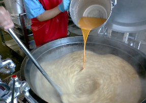 もう一つの画像は、ステンレス釜でジャムをじっくり煮込んでいるときのものです。