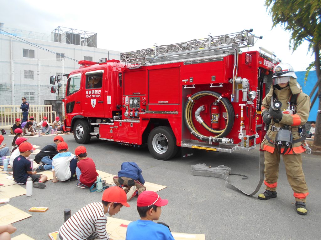 小金井消防署から、消防団員の皆さんにポンプ車で来校していただき、消防写生会を実施しました。