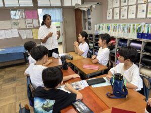 全て英語でのやり取りに緊張気味の児童もいましたが、みんな笑顔で