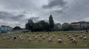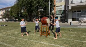 運動会本番に向けて、いよいよソーラン節の練習も大詰めになってきました。高学年として初めての運動会。「心身努笑(しんしんどしょう)」というスローガンを掲げ、全身で努力し最後に心から笑える演技にしようと練習に励んでいます。